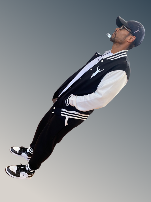 black logo Men's All-Over Print Stripe Sleeve Track Jacket